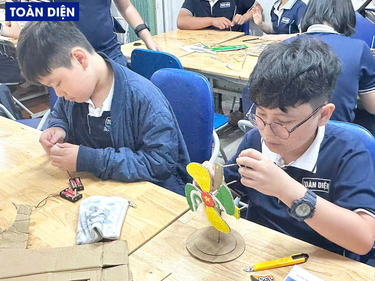 Học sinh tham gia các hoạt động STEM đa dạng, sáng tạo — từ chế tạo mô hình đến nghiên cứu khoa học.
